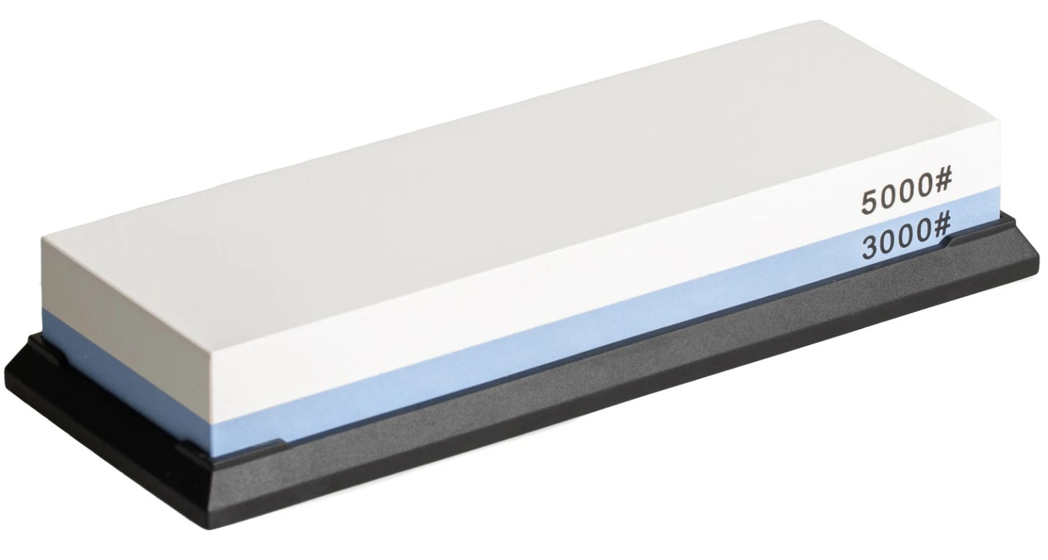 De Blackwell Wetsteen met een fijne korrelgrootte van 3000/5000 is perfect om je messen vlijmscherp te polijsten. Je kunt deze wetsteen gebruiken om messen die in een goede staat zijn net dat beetje extra scherp te maken. Is je mes toch echt bot of beschadigd? Dan heb je eerst een grovere steen nodig. Je kan dan het best beginnen met de Blackwell Wetsteen 400/1000 om het mes weer in vorm te brengen of om braampjes weg te werken.