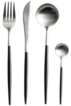 Kan je besteklade wel wat opvulling gebruiken? Met de Jay Hill bestekset gemaakt van RVS haal je een 4-delige set in huis. Dit eigentijdse en opvallende bestek geeft je gedekte tafel een stijlvolle uitstraling. Het zilverkleurige bestek heeft een brede bovenkant met een zwart en smal heft.
