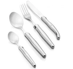 Het stijlvolle Laguiole bestekset is ontworpen en gefabriceerd in Frankrijk. Het bestek is prachtig vormgegeven en heeft door de elegante versieringen op het heft een klassieke uitstraling. Het bestek is gemaakt van hoogwaardig roestvrij staal en heeft een stevige handgreep die comfortabel in de hand ligt. De bestekset is geschikt voor zes personen en bestaat uit 24 delen. De Laguiole bestekset wordt geleverd in een houten bestekcassette.