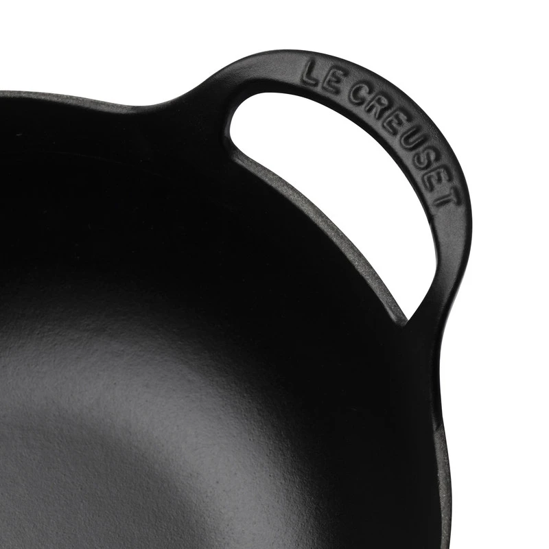 Deze Le Creuset Wokpan Balti Dish Mat Zwart is afkomstig uit Baltistan in Noord-Pakistan. Deze wok heeft een diameter van 24 centimeter en is vervaardigd uit geëmailleerd gietijzer. Dit materiaal houdt de warmte vast, zodat het eten gelijkmatig kan bakken en bruinen. Met deze wokpan maak je diverse Balti-gerechten, zoals gemarineerd vlees, groenten en specerijen. Ook kan deze pan onder de grill of in de oven gebruikt worden.