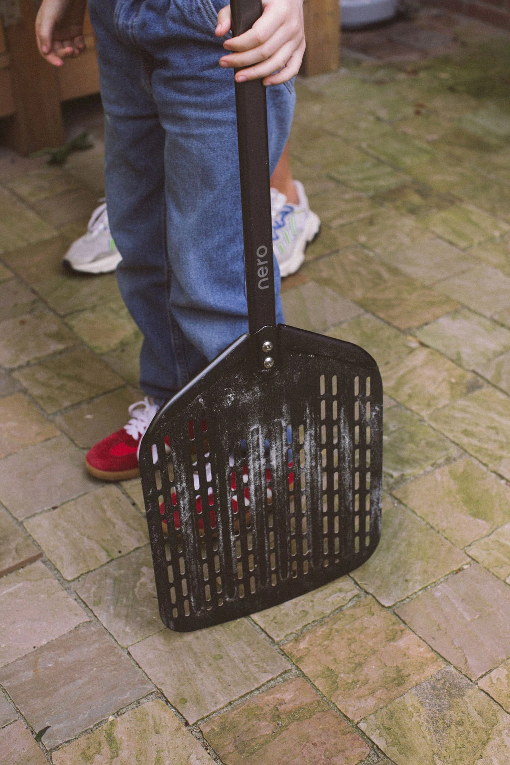 De Nero Cooking Pizza schep / Pizza Peel – Aluminium is vervaardigd uit duurzaam aluminium. Dit zorgt niet alleen voor een stijlvolle uitstraling, maar ook voor comfort en gebruiksgemak tijdens het hanteren. Door de perforatie glijdt je pizza super soepel op de schep. Overtollig meel wordt afgevoerd dankzij de gaatjes en stoom kan erdoor ontsnappen als je hem uit de oven haalt, zodat de bodem knapperig blijft.