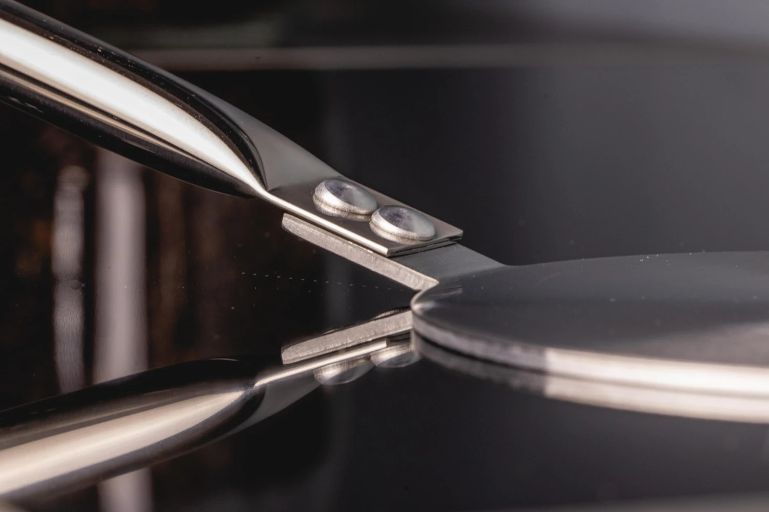 Deze inductie adapter is gemaakt van roestvrij staal en heeft een diameter van 14 centimeter.