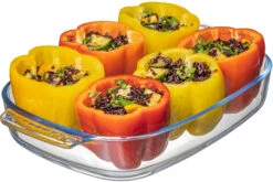 Verras je gasten met een heerlijke zelfgemaakte lasagne in de Cookinglife Ovenschaal 34x22x6cm! De ovenschaal is gemaakt van borosilicaatglas en heeft een afmeting van 34 x 22 x 6 cm. De ovenschaal is niet alleen ovenbestendig, maar ook magnetron en vriezer. Zo kan jij makkelijk je gerecht invriezen om het later op te warmen in de magnetron! Na het gebruiken van de Cookinglife Ovenschaal 34x22x6cm kan deze eenvoudig worden gereinigd in de vaatwasser.