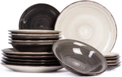 Wil je graag een keer iets anders dan je standaard witte serviesset, maar wil je niet teveel uitpakken? Kies dan voor deze Vintage Loft serviesset. De prachtige neutrale kleuren zijn anders, maar vallen zeker niet teveel op. Let wel op: deze borden worden gemixt geleverd, er kan dus geen kleur gekozen worden. De set bestaat uit:
