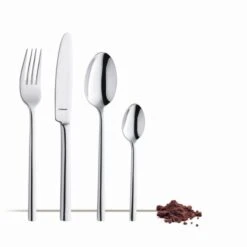 Het bestek is gemaakt van hoogwaardig 18/10 edelstaal. Door de samenstelling van het staal en het hoge nikkelgehalte is het bestek bestand tegen voedingszuren. Door het hoge chroomgehalte is dit bestek roestvrij en daarom vaatwasserbestendig.